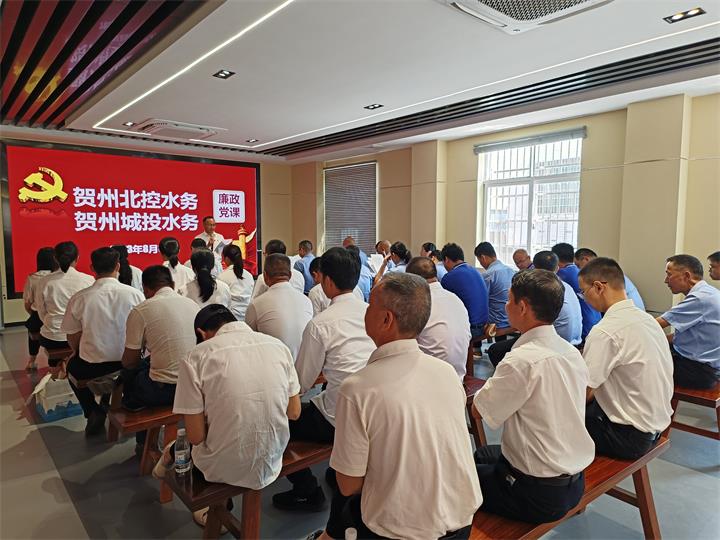 賀州市城投水務(wù)有限公司黨支部、廣西賀州北控水務(wù)有限公司黨支部全體黨員參加活動。