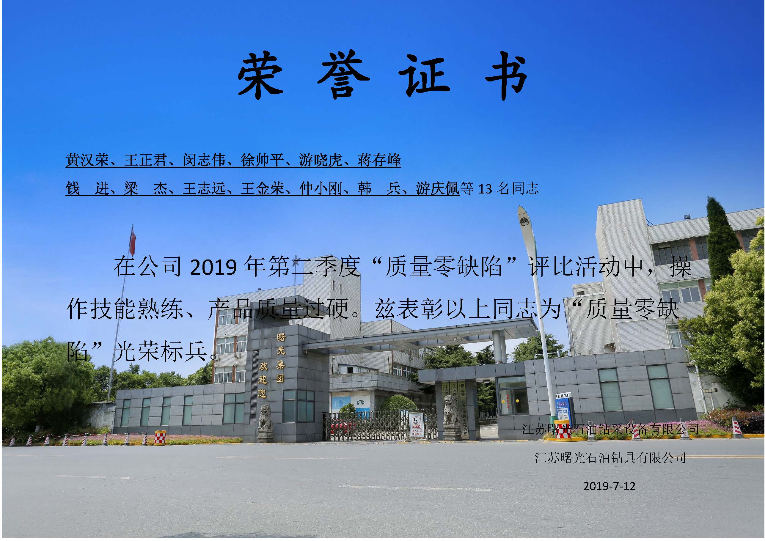 公司從2019年初開展“質量零缺陷”評比活動,經過所有員工的積極配合,此項工作進展順利,目前已經評比了兩期。昨天下午公司舉行頒獎會議,對于在“質量零缺陷”評比活動中表現優異的個人進行表彰。以下人員獲得“質量零缺陷”獎。